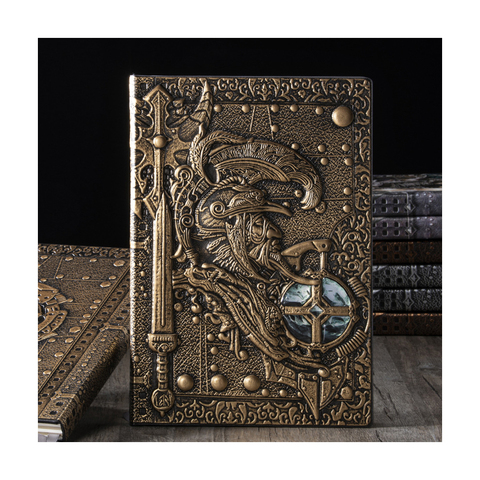 Tarot-cuaderno vintage de cuero sintético con relieve 3D, hecho a mano, bronce, diario, cuadernos, papel 100gsm